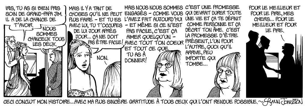For Better or For Worse® a connu bien des changements. Au départ, la bande dessiné donnait un aperçu de la vie quotidienne de la famille Patterson, puis a grandi en bande dessiné ayant des personnages complexes qui ont allures de véritables personnes. Les situations familières vécues par Elly Patterson et sa famille n’ont fait qu’accroître le succès impressionnant de la bande dessiné.